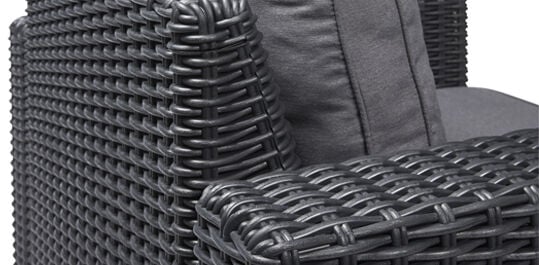 The California is a lounge set is made of more than 83% recycled plastic with a 6mm round wicker design. The woven wicker style creates a luxurious and trendy look and can create a focal point in any outdoor space. The set consists of two wide lounge chairs, a spacious three seater sofa and a square table which is perfect for entertaining indoors or outdoors in conservatories, gardens and patio areas. The cushions included are 7.5 cm thick and provide optimal seating comfort to relax and unwind. Lightweight in its structure therefore is easier to move to suit any setting and is easy and quick to assemble. The garden set is completely maintenance-free and weather-resistant, so you can enjoy the lounge set for years to come.