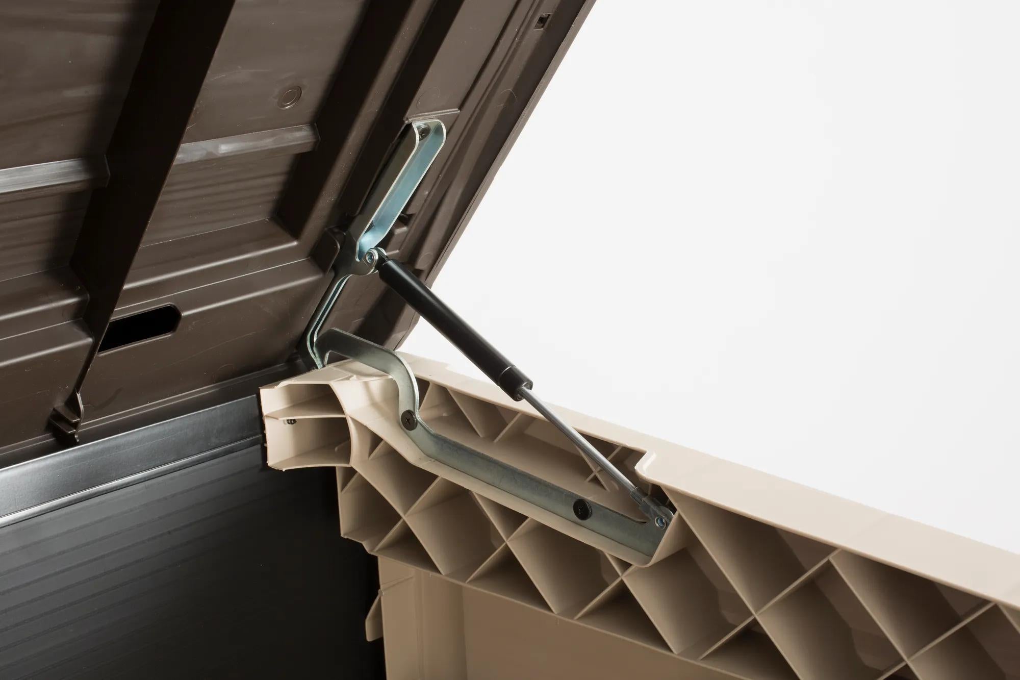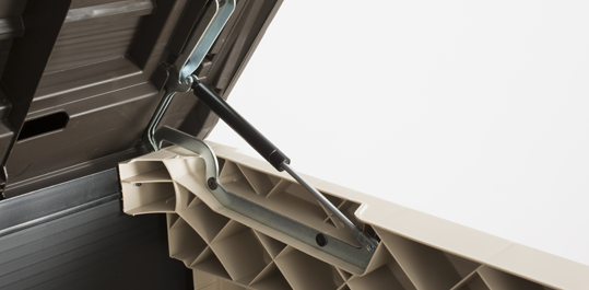 Easy to assemble and easy to use, the global best-selling Store-It-Out MAX provides an ideal outdoor storage solution for everything from barbecues to outdoor furniture. Amazingly compact and versatile, this weather-resistant storage unit will keep up to 1200 L/42 cu.ft. of contents fresh and dry. For your convenience, it features front and top opening, a sloped threshold and bin-opening kit.