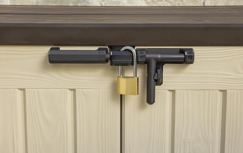 • Ideal outdoor storage solution for garden tools, equipment and x2 240 L wheelie bins